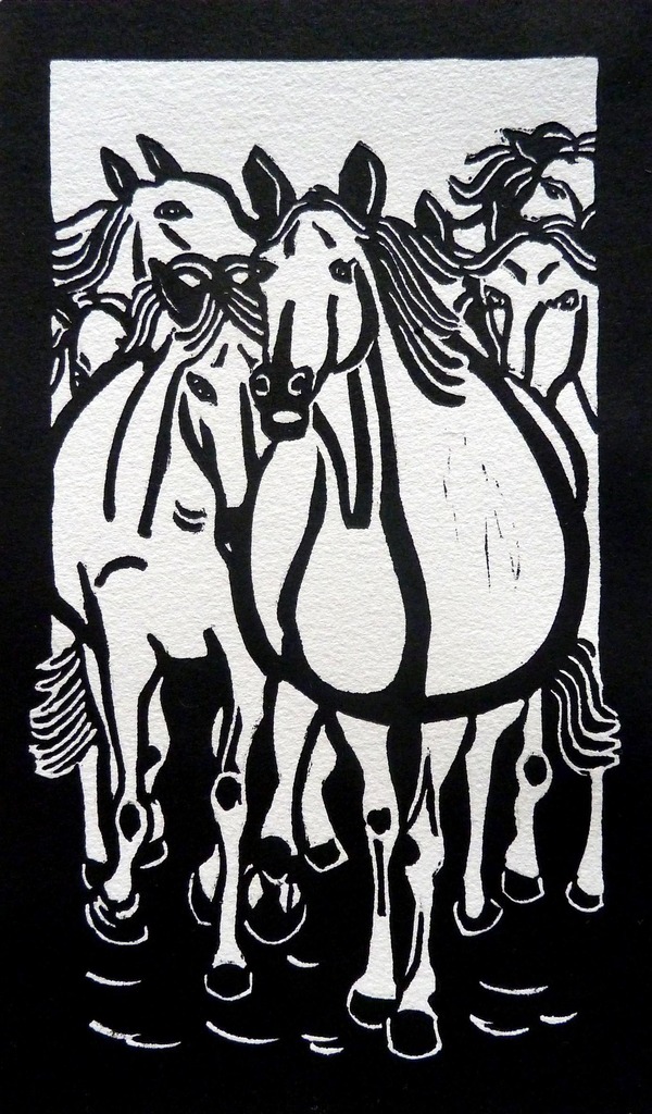 Zwart Dieren Abstraherend Paarden Grafiek Black Animals Horses Linocut Linoleumsnede