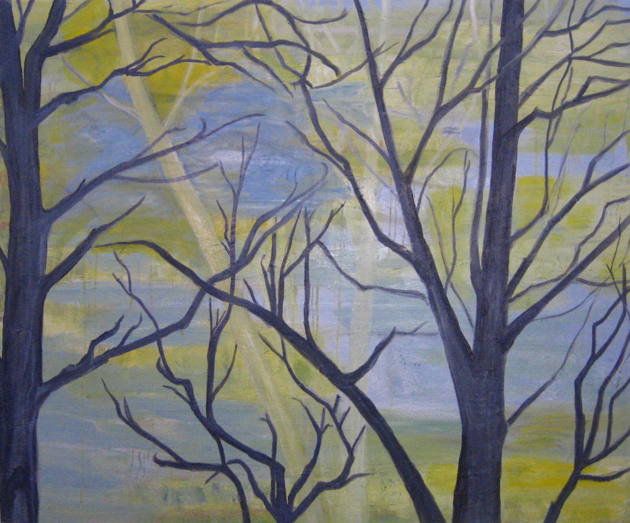 Bomen Tegenlicht Raam Geel Blauw Landschapherfst Olieverf
