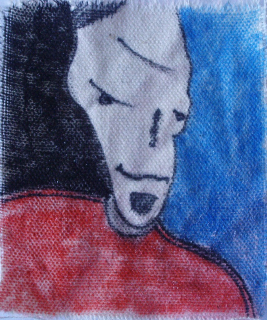 Mini, deel van een serie, geschikt voor in een Tomy Gacha Artomat. Kan opgenaaid worden op tas of jas of als zelfstandig kunstwerk functioneren.