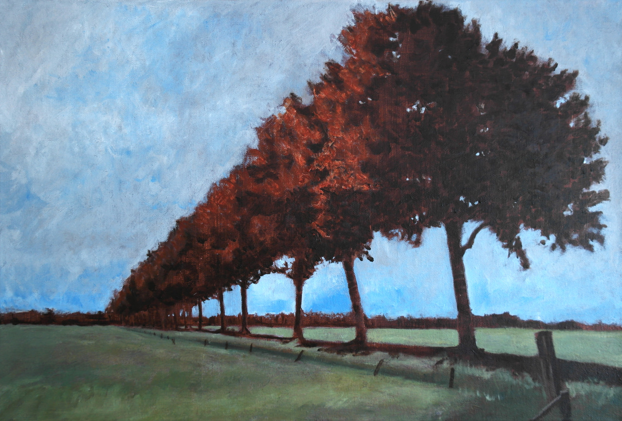 Bomen Nederland Dijk Landschap Bomenrij Zomer Acrylverf