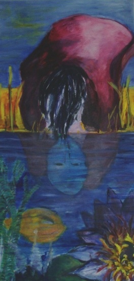 Dit werk (tweeluik) is geinspireerd door het verhaal van narsisme,kijkend in het water. Het is in opdracht geschilderd.