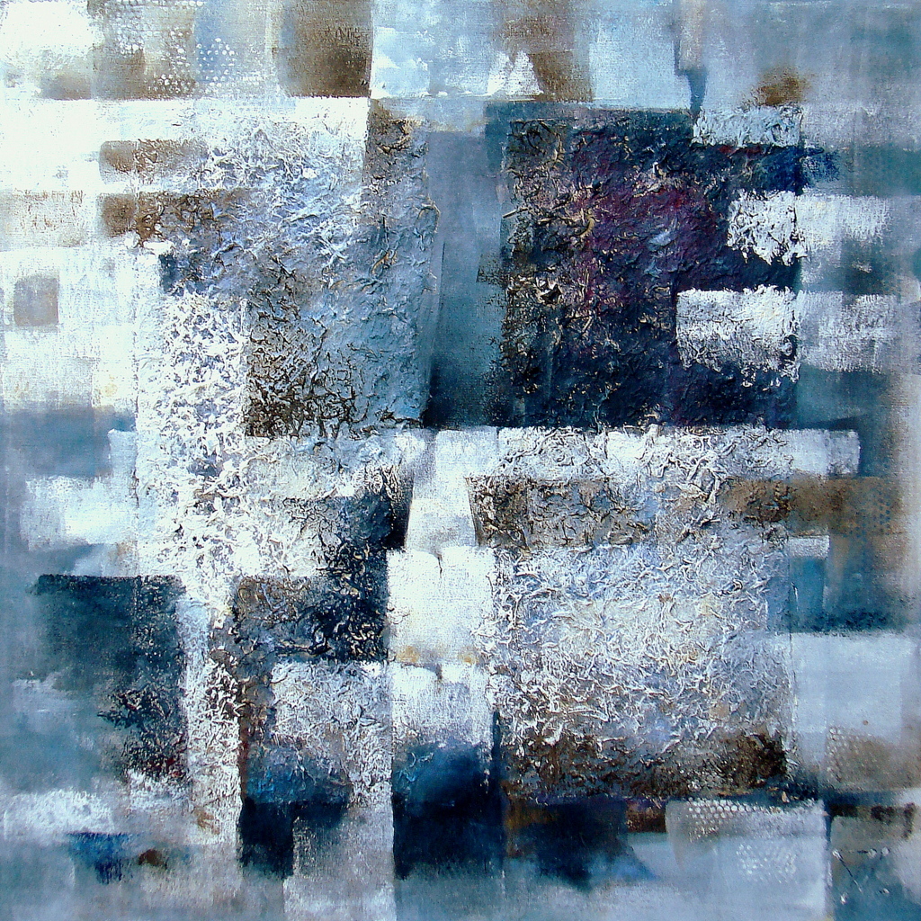 Schilderij Abstract Modern Blauw Schilderijen Acrylic Ritme Kracht Design Structuur Architectuur Rust Decoratief Hedendaags Eigentijds Geometrisch Abstracte Kunstwerk Bijzondere Geometrische Balans Geometric Mixedmedia Office Artwork