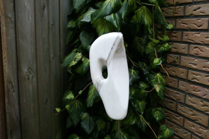 Sinds enkele jaren maak ik tuinbeelden van hardsteen (voornamelijk marmer) en hout. Het meest fascinerende vind ik de eindfase: een ruwe, nietszeggende steen toont dan haar ware schoonheid, in de vorm van prachtige kleuren en tekening. Ik werk voornamelijk met materialen, die buiten geëxposeerd kunnen worden.