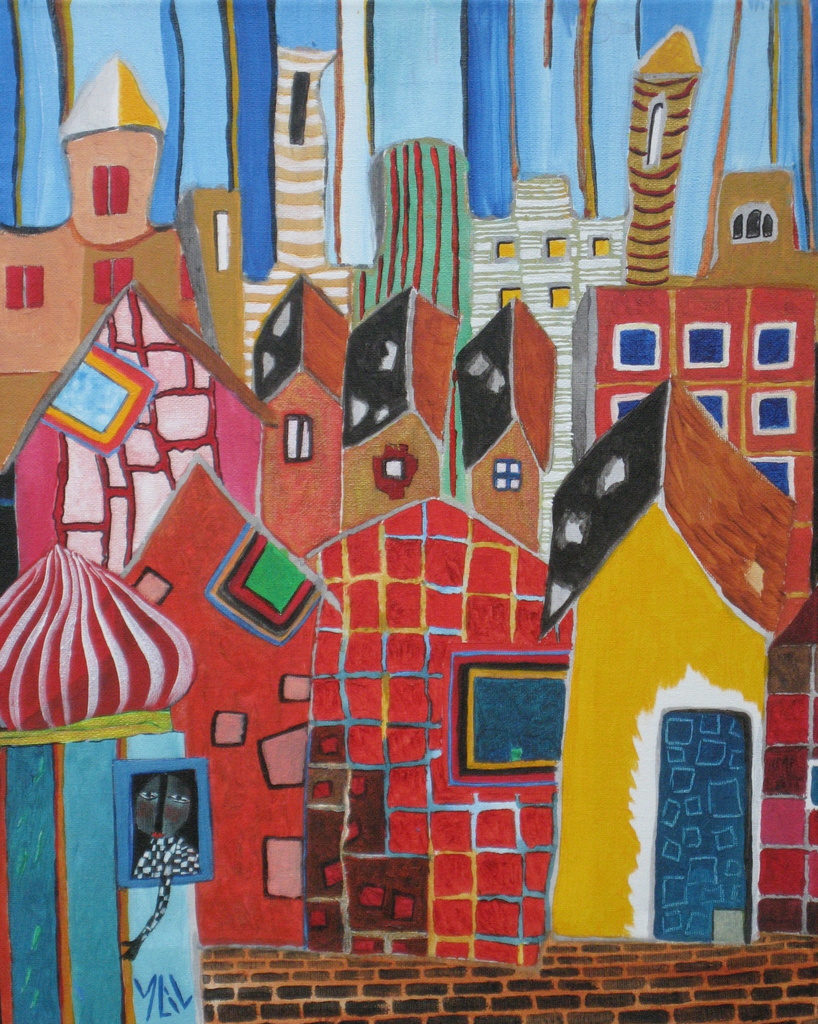 Huizen Acryl Surreeel Rood
