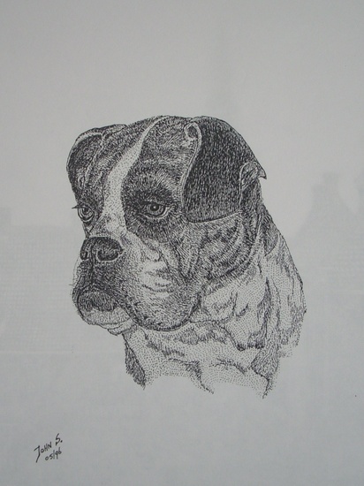 Een pentekening van een jonge boxer in opdracht gemaakt.