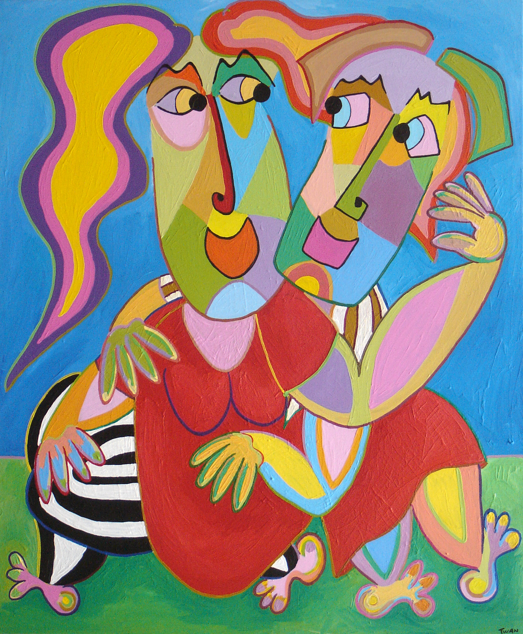 Het werk van Twan gaat altijd over mensen, hun gevoelens, maar vooral over hun onderlinge relaties. De onderwerpen zijn alledaags en worden op een direkte humoristische wijze verbeeld. Hij maakt kleurrijke schilderijen, zeefdrukken en beelden. Elk schilderij is een verzameling dagboekpagina's uit verschillende periodes. Op de jaren zeventig geinspireerde motieven duiken op bij hedendaagse belevenissen. Gevoelens zijn tijdloos.