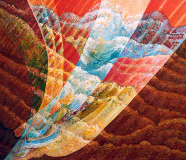 Jan Nijland is expressionist en leerde het vak aan de Rijksacademie voor Beeldende Kunsten in Amsterdam. Hij houdt ervan het hele proces van linnen opspannen en verf maken tot aan het maken van de lijsten in eigen hand te hebben.