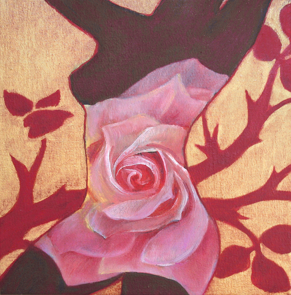 Rood Rose Gold Goud Vrouw Woman Oil Olieverf Bloem Red Roze Flower Roos Pink