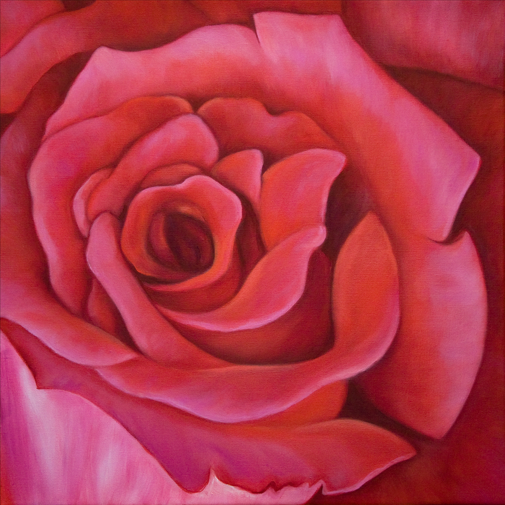 Schilderij Rood Rose Oil Olieverf Bloem Red Roze Flower Roos Pink