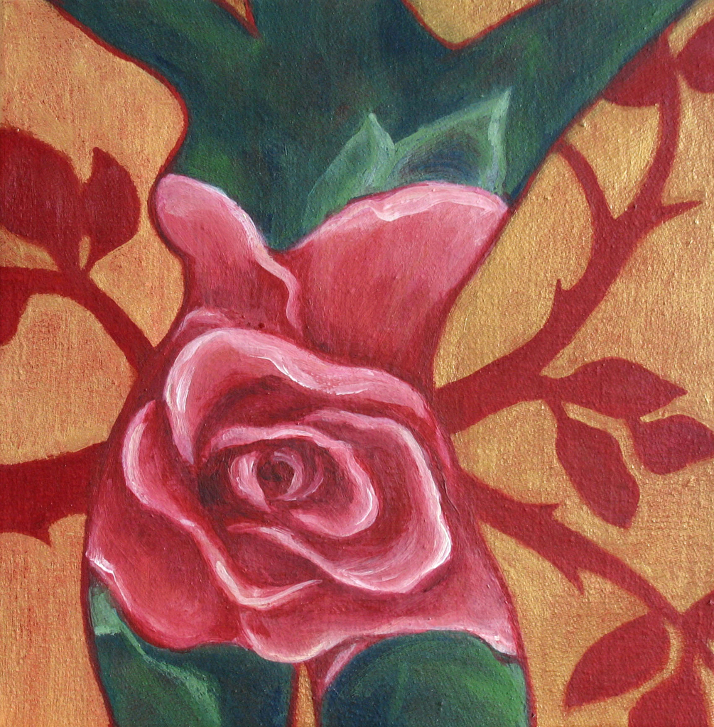 Rood Rose Gold Goud Groen Vrouw Woman Oil Olieverf Bloem Red Green Roze Flower Roos Pink