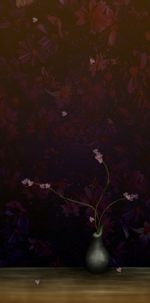 Grijs Zwart Tulpen Groen Bloemen Vaas Wind Drie Takken Sober Behang Mos Japans Ikebana Wabisabi Dwarrelen