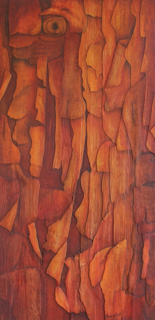 Veneer Acer is een collage opgebouwd met fineer van eikenhout inkt op fineer op paneel 120 x 60 cm