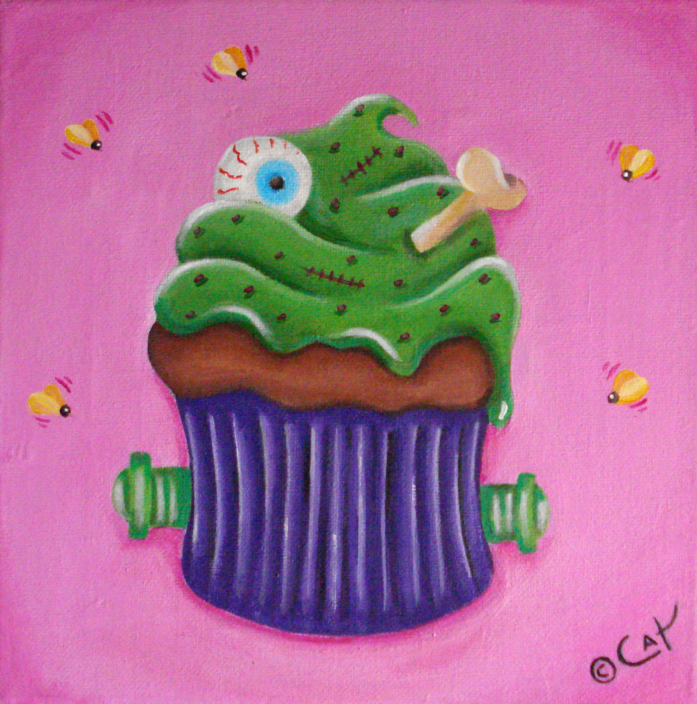 Frankenstein Roze Magenta Groen Cupcake Cake Zoet Snoep Acryl Doek Paars Vliegen