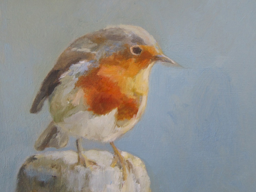 Roodborstje olieverf op paneel - 18x14 cm