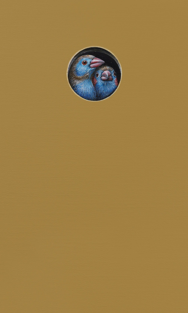 Blauwfazantje (Uraeginthus bengalus). Dit doekje maakt onderdeel uit van de geschilderde installatie 'Multicultural'. Meer informatie over het project kun lezen op de informatiepagina.