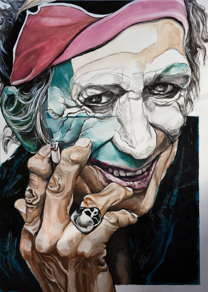 Schilderij Portret Portrait Painting Rock Vierluik Zanger Muzikant Singer Musician Stones Rolling Rollingstones Bandlid Quad Keithrichards Bigportrait Quadruplet