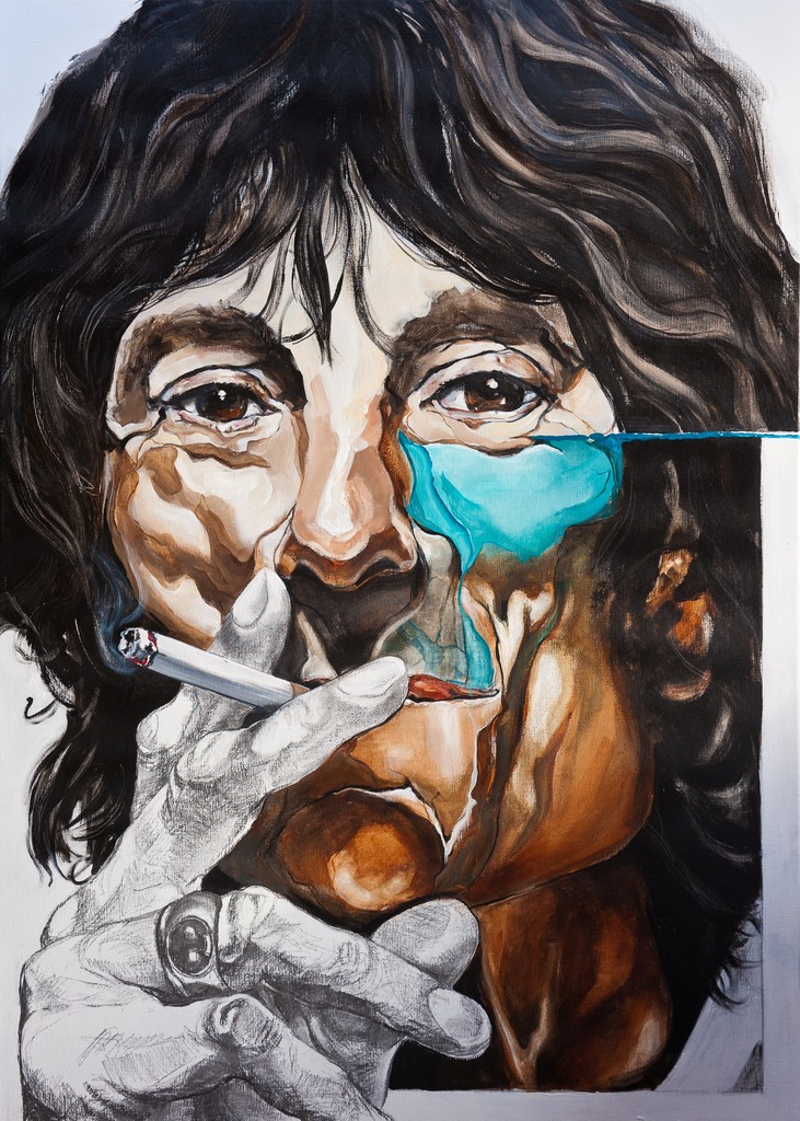 Schilderij Portret Van Portrait Painting De Rock Vierluik Muzikant Singer Musician Stones Rolling Rollingstones Bandlid Quad Bigportrait Quadruplet Ronniewood