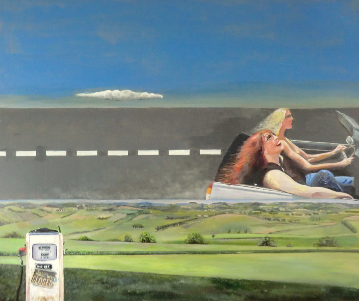2 meiden, genieten van hun vrijheid, landschap gezien vanaf Henri-Chapelle (Amerikaans oorlogskerkhof in Belgie)