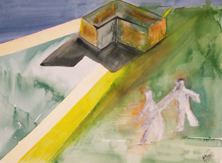 Andrea Timmerman buit alle grafische en schildertechnieken uit om de evolutie van de mens in zijn tragiek en zijn streven te observeren en vast te leggen als een verwijzing van het verleden naar de toekomst. (Oostende, België)