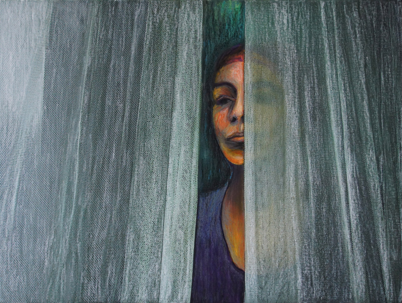 Groen Vrouw Mens Schemer Hoofddoek Gesluierd Zelfportret Mysterie Kijken Gordijn Vitrage Sluier Achter Verhullen Onthullen