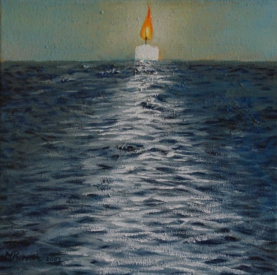 Zeegezicht Surreeel Olieverf Zee Golven Kaars Schilderij