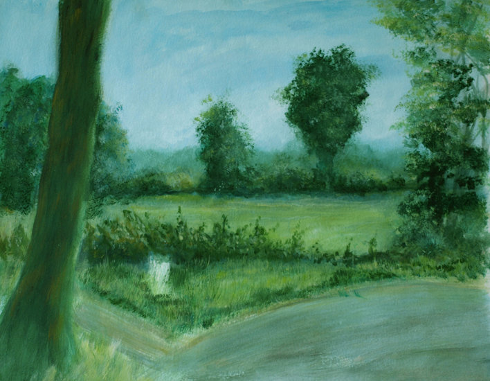 een doorkijkje bij de stuw bij Leusden in acryl