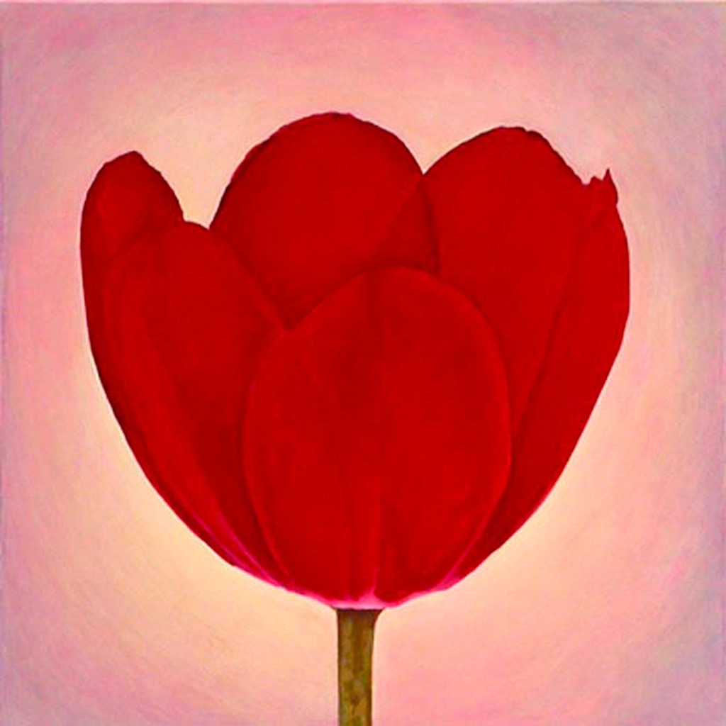 Uit de collectie 'bloemen'. De onderschildering evenals de achtergrond zijn geschilderd in acrylverf. de tulp zelf is weer opnieuw met een aantal lagen olieverf geschilderd.
