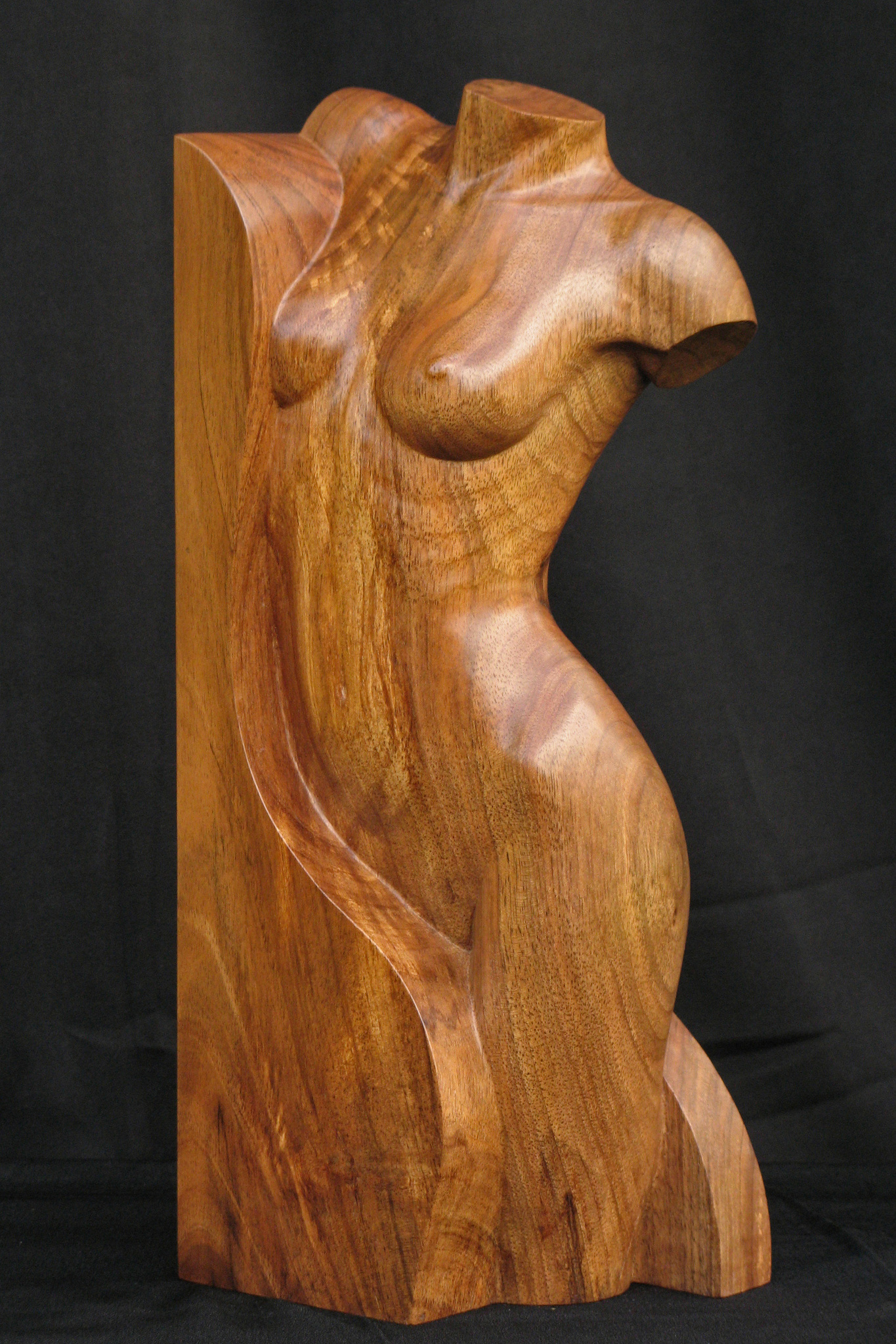 Gestileerde vrouwelijke tors - houtsoort: noten - hoogte 33 cm