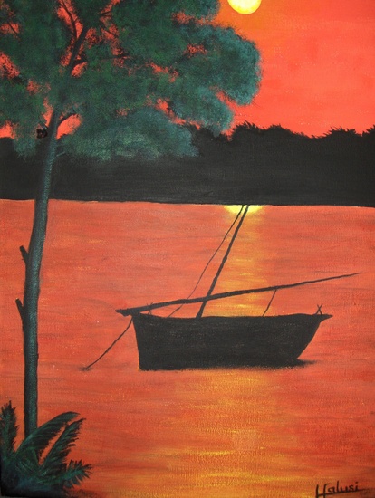 Boot in het water, acryl op doek, zijkanten meegeschilderd