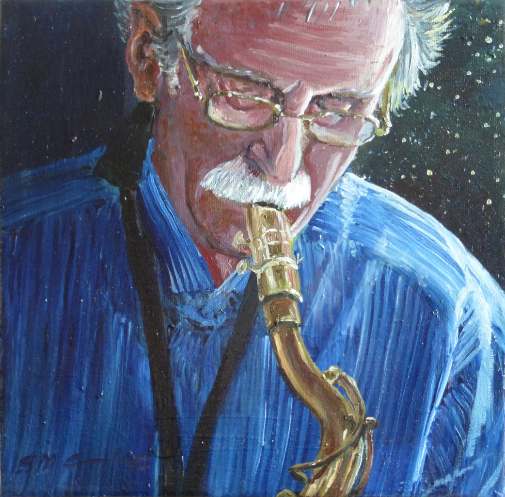 Uit de serie Wintermuzikanten, speciaal geschilderd voor de wintermarkt in de Bilt 13-12-2013
