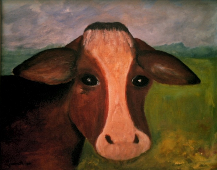Voor in het prentenboek,Koetje boe. Acrylle op doek