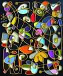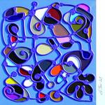 Frank le Pair (Eindhoven 1965) Landschappen van gestileerde vormen, vrolijke kleuren en een krachtige lijnvoering in relief. Natuurstructuren in ongedwongen serene sferen, geveegd, gekrast in transparante lagen. Het is de eenvoud in lichtval en schaduwwerking die verrast.