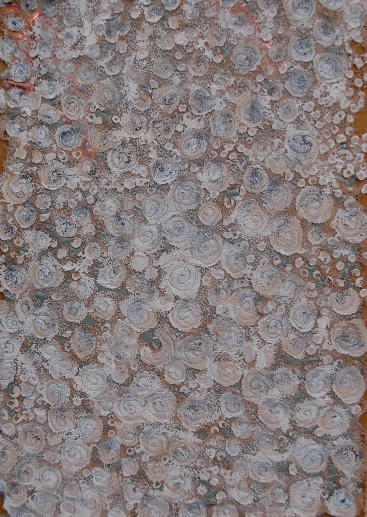 Mijn grootste uitdaging ligt in het vinden van een balans tussen tegenstellingen; zoals de zachte textuur van garens en het pasteuze van verf. Hierbij werk ik in lagen met als doel te zorgen dat de lagen naadloos in elkaar overgaan zodat het een samenhangend geheel wordt. Het is iedere keer weer een verrassing hoe het werk zich opbouwt. Dat maakt dat het me blijft boeien en geeft aanzet tot vele experimenten.