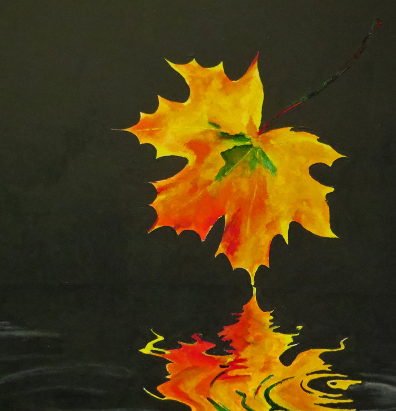 Rood Geel Zwart Acryl Realistisch Herfst Blad Weerspiegeling Esdoorn
