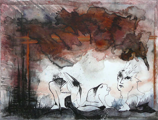 Pieter Drift (Vlaardingen, 1967), afgestudeerd in 1991 op de de Academie van Beeldende Kunsten te Rotterdam, maakt etsen, tekeningen en collages.