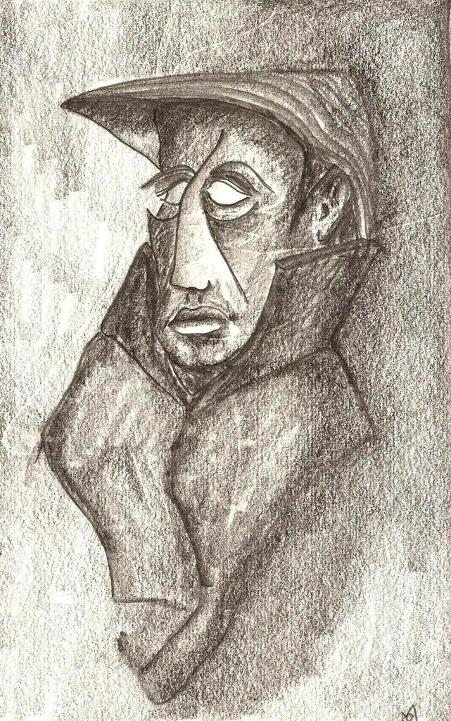 Man with hat, torned face