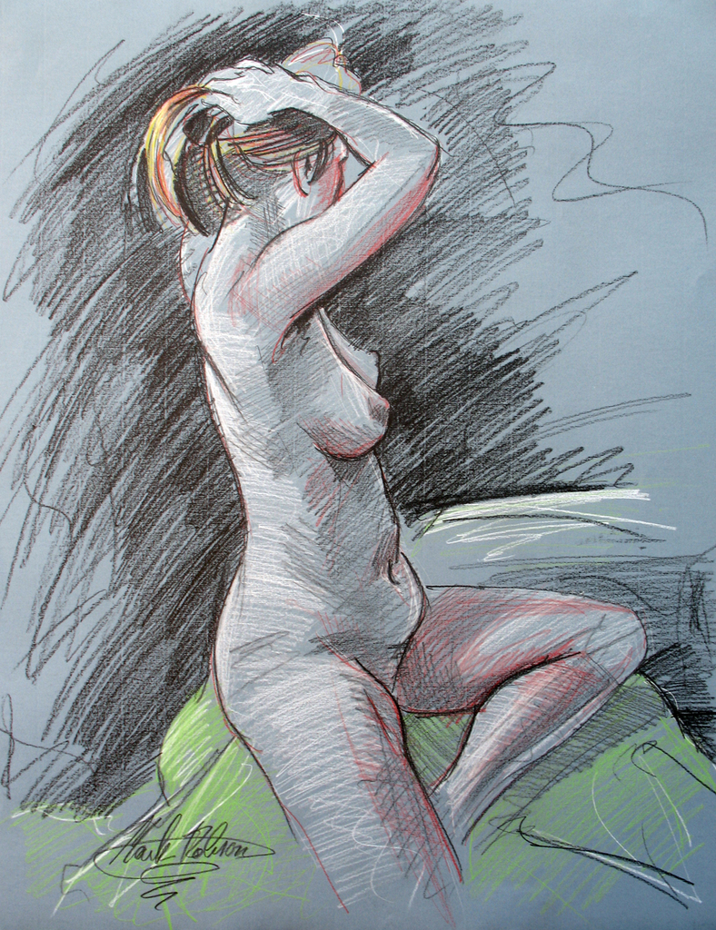 Naakt Potlood Model Pastel Rug Naaktmodel Studie Pastelpotlood 23 Inneke Rechtopzittend