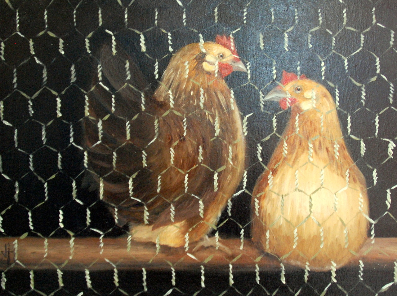 Kippen achter gaas compleet met zwart/zilveren baklijst