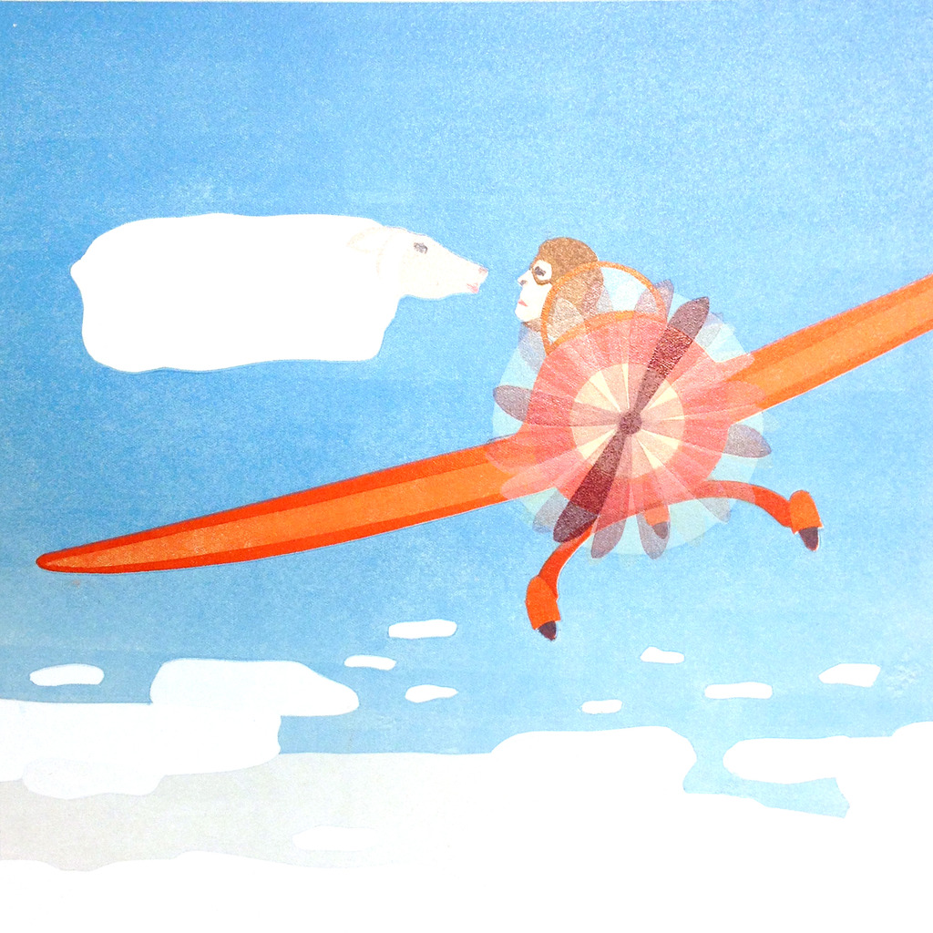 Oranje Klein Art Vliegtuig Kunst Dromen Lucht Grafiek Air Fantasie Vliegen Schaap Sheep Orange Ontmoeting Cloud Small Vliegend Druktechniek Flying Gift Meeting Printing Graphics Aviation