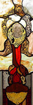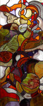 De muzen 3c, bert cox (1966). Glasschilderkunst; gebrandschilderd glas -in-lood Tekeningen in houtskool en andere media.