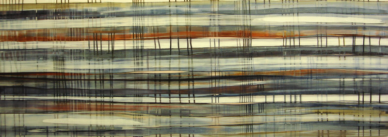 Schilderij Abstract Acryl Water Doek Lucht Land Air Ruimte Koren Utrecht Lisette Waterwerken