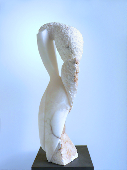 Abstract beeld in albast. beedl is deels wat transparant (laat licht door op dunnere delen).