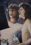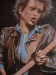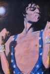 Deze schilderijen zijn een uiting van mijn liefde voor muziek. De afgebeelde artiesten zijn een aantal van mijn favoriete rocksterren uit de 70-er jaren; voor mij, op muzikaal gebied, een veelzeggende periode. Ik heb de artiesten willen neerzetten in een voor hun karakteristieke pose; het ging me hierbij in de eerste plaats om de kick van het schilderen terwijl ik naar hun muziek luisterde en de emotie die een bepaald nummer bij me opriep.. Ik heb geschilderd met acryl op papier; gemiddelde afmeting van de schilderijen is 70 x 100 cm.