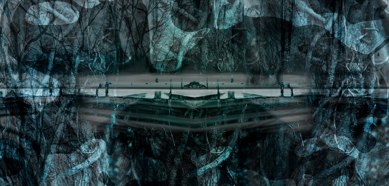 krachtige digitale grafiek over het spanningsveld tussen individu en maatschappij; de chaos in de eenheid van het leven. sterke emoties...