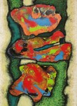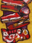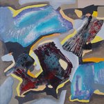 Abstracte en figuratieve schilderijen in gemengde techniek en collages, tekeningen en foto's.