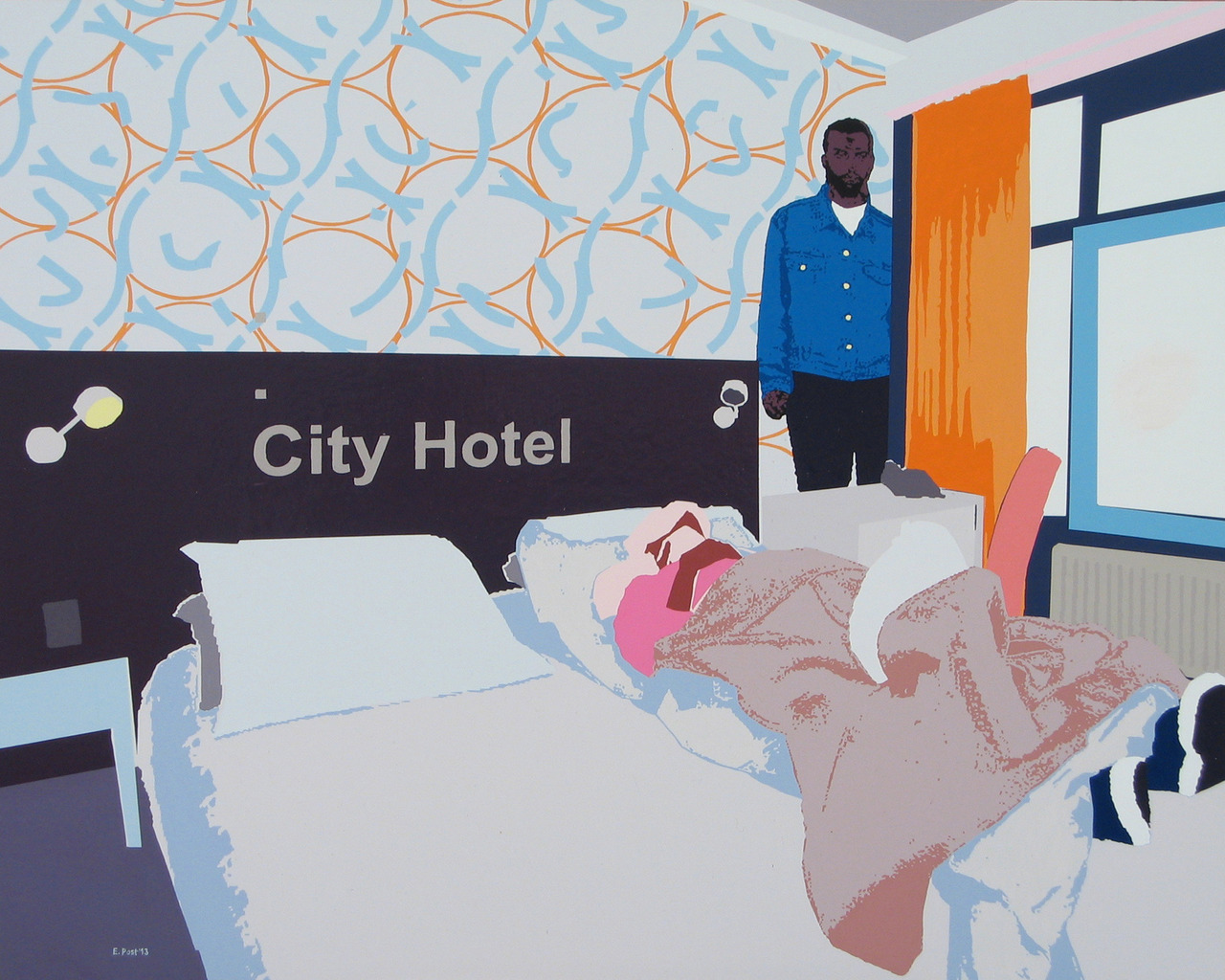 Hotel Kamer Vervreemding Bevreemding Kleur Acryl Mensen Afrikaan Lijden Vluchteling