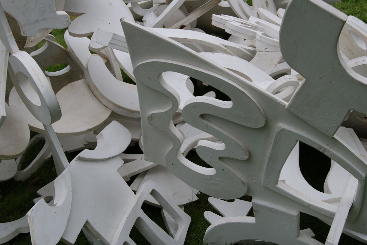 nieuwe symbolen iconen, logo's; voortbordurend op bekende symbolen, uit primitieve culturen, logo's, vormen, symbolen en iconen. Daardoor onstaat een nieuwe symbool taal met een andere betekenis. aan de bezoeker zelf de vrijheid om hierover na te denken en een invulling te geven.
