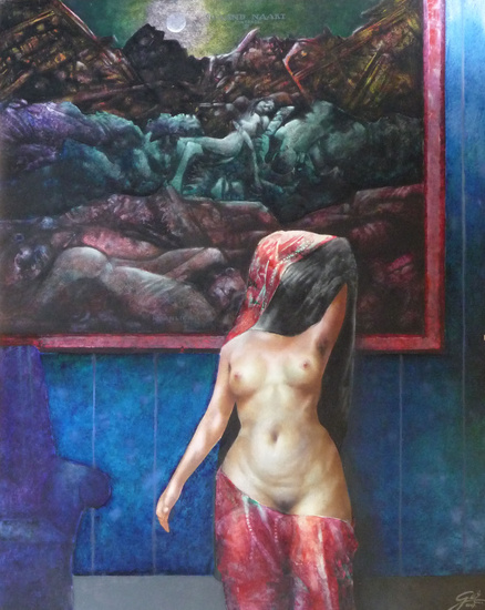 Vernietiging Maan Muur Schilderij Naakt Doek Stoel