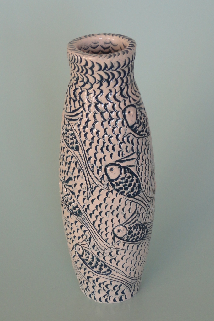 vaas met vispatroon in relief