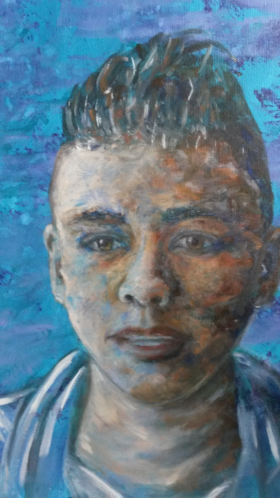 Tijdens een masterclass gemaakt. Acryl ondergrond met olieverf portret.